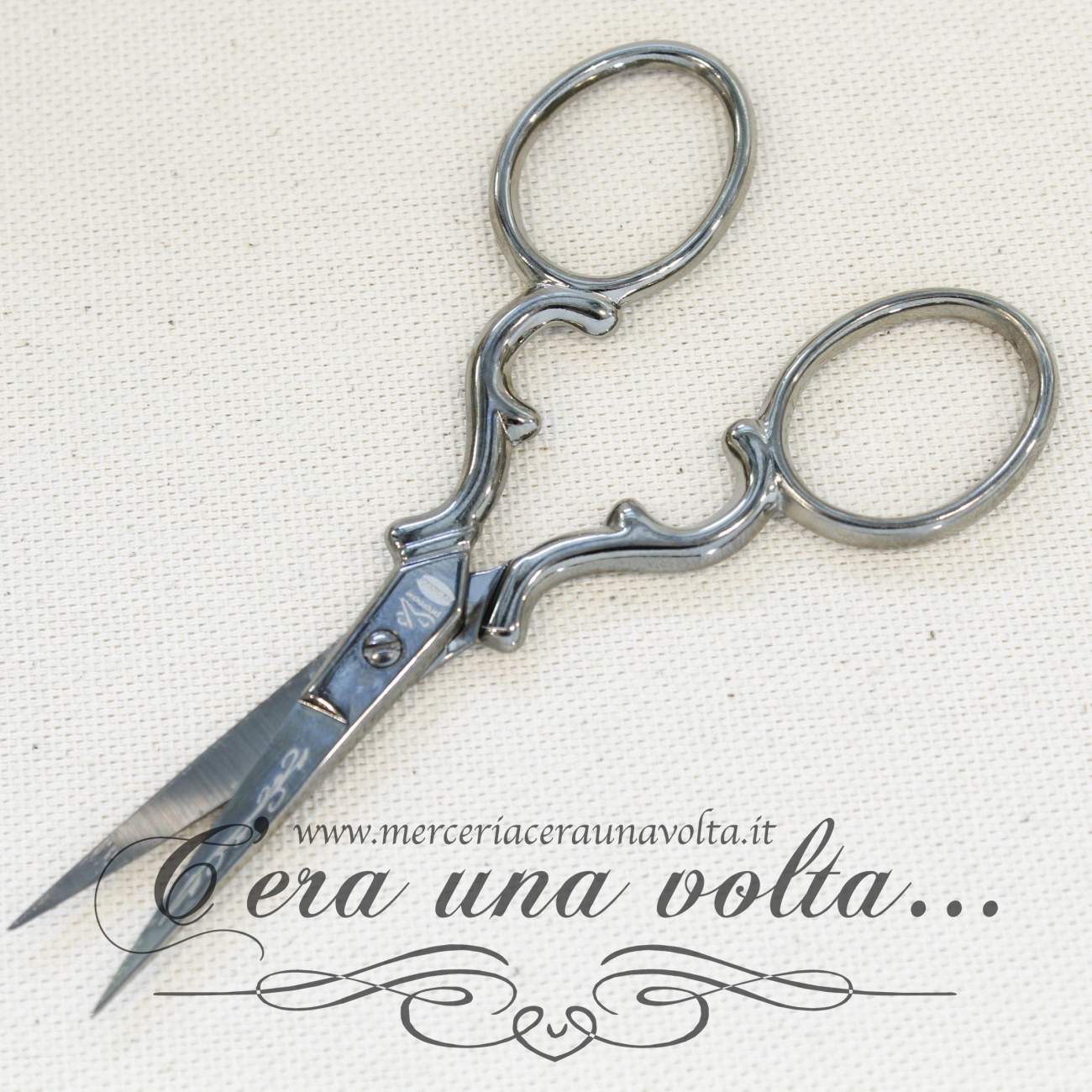 Forbice dalle punte sottili per tagliare con la massima precisione, ideali per lavori di ricamo e cucito, per chi vuole coniugare l'estetica alla funzionalità, lama retta in acciaio al carbonio. Decorazione arabesca sulla parte superiore della lama